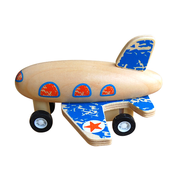 Deze houten vliegtuigjes zijn in 2 kleuren leverbaar: blauw/naturel en groen/naturel en worden per stuk verkocht.