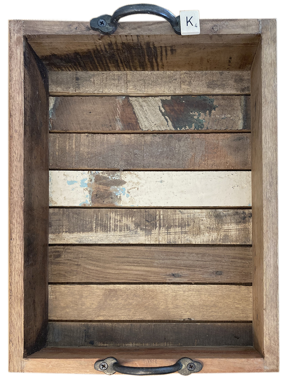 Een handig, kleurrijk of juist naturel dienblad met vele toepassingen, gemaakt van gerecycled sloophout.