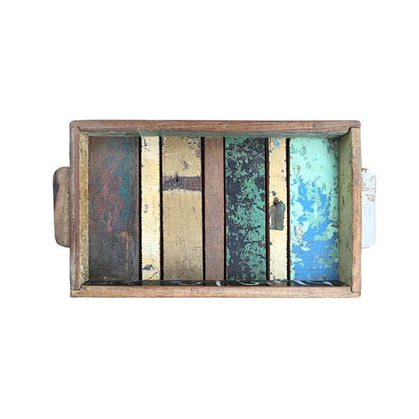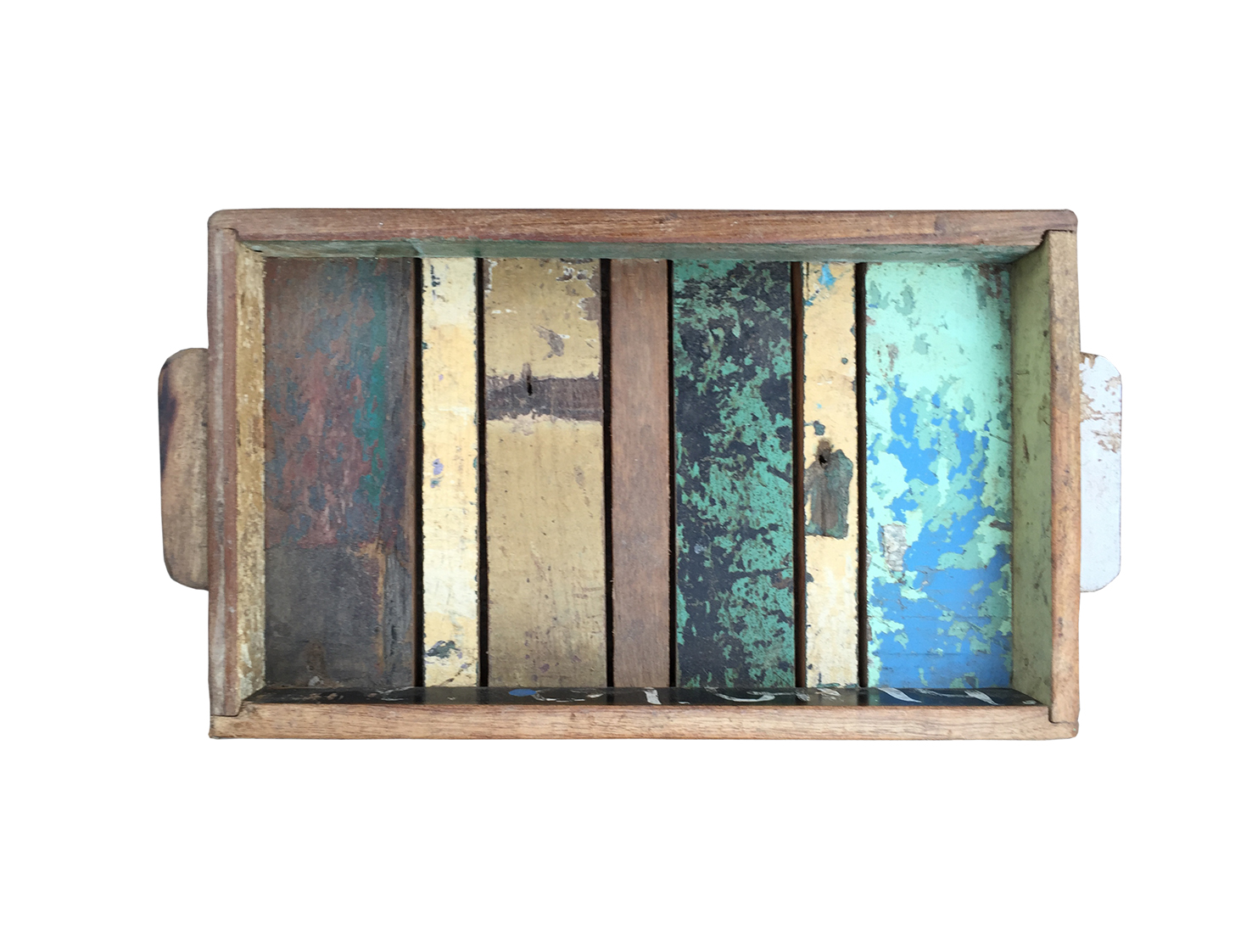 Een handig, kleurrijk of juist naturel dienblad met vele toepassingen, gemaakt van gerecycled sloophout.