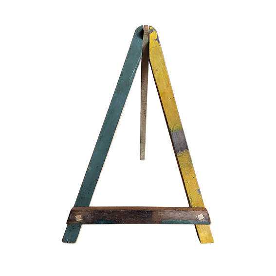 Een eenvoudige standaard voor een fotolijst of een schilderij. Ook mooi met een spiegel met sloophouten omlijsting. Gemaakt van sloophout van huisjes of vissersbootjes uit India, met daarop nog de originele verf.