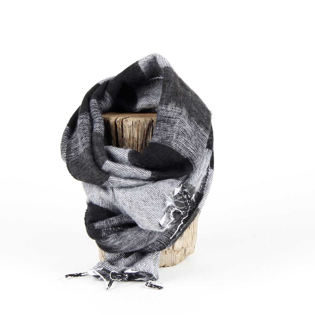 Heerlijke zachte sjaal uit Nepal in de kleur zwart grijs gestreept. Een stijlvolle kleurencombinatie. De sjaal is gemaakt van katoen en acryl. Doordat de sjaal geborsteld is, krijgt hij een wollig effect. De sjaal is ongeveer 30 x 140 cm en kan gewassen worden op 30 graden.