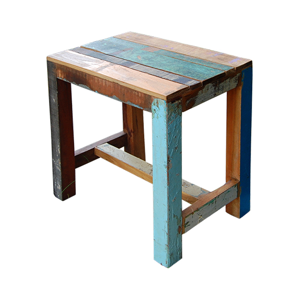 Dit sloophouten tafeltje is gemaakt van hergebruikt hout van huizen en bootjes uit India.
